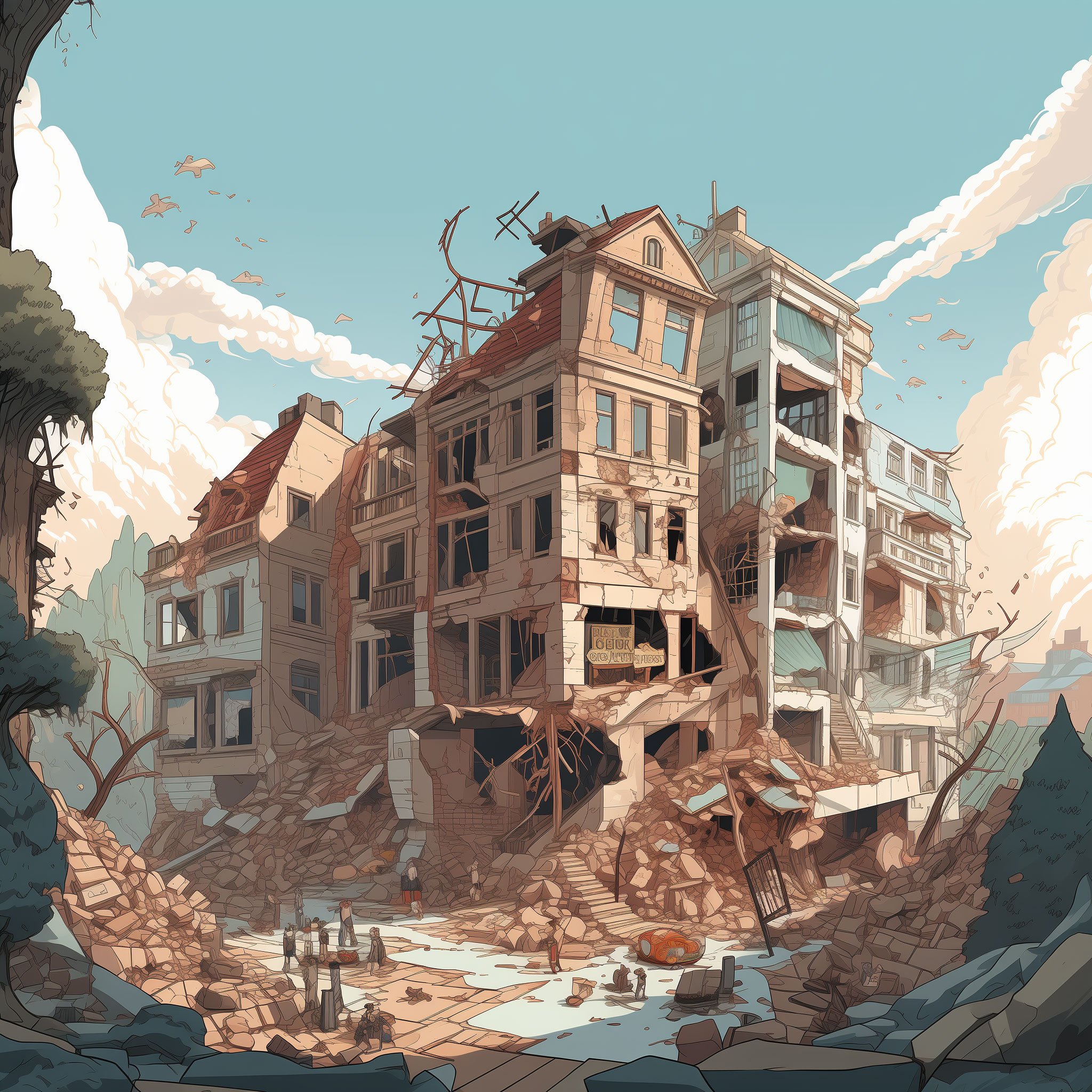 گروه گنگ بعد از بیست سال به آن کافه برمیگردند کافه خیلی خیلی خراب شده بود مثلا صندلی هایی چوبی که در اثر باد پوسیده بود و اگر روی آن بنشینیم صدای جیر جیر میدهد وپرده ها کهنه داشت وپردها خیلی خیلی پاره بود و چراغ ها گاهی روشن خاموش و گاهی اصلا روشن نمی شد وآجر ها یا خراب یا شکسته شده بود و صاحب آنجا در جنگ طوفان الاقصی کشته شده بود وپسرش آنجا کار می کرد ولی پسرش آن کافه تعمیر کرد و آنجا جزو بهترین کافه ها شد
